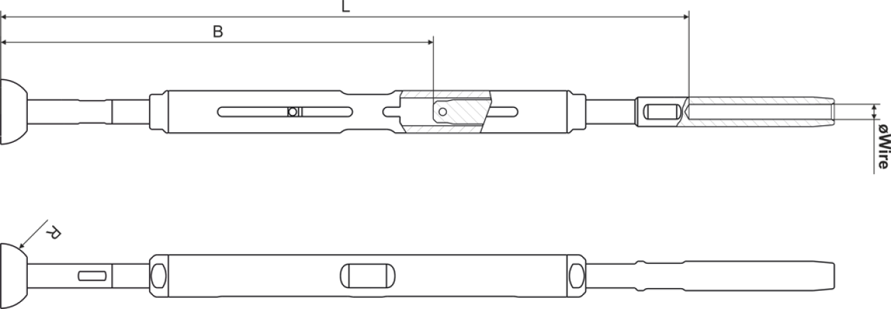 | Item No | Wire diam (mm) | Thread size | R (mm) | LMIN (mm) | LMAX (mm) | Breaking Load (kg) |