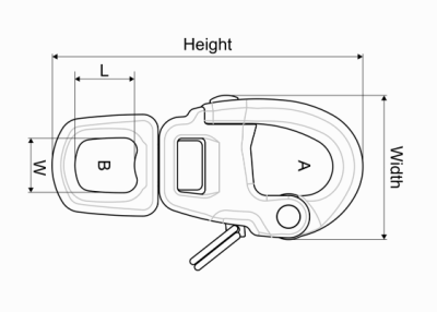 | Item No | SWL (kg) | BRL (kg) | ØPin (mm) | W (mm) | L (mm) | Width (mm) | Height (mm) | ØA (mm) | ØB (mm) |