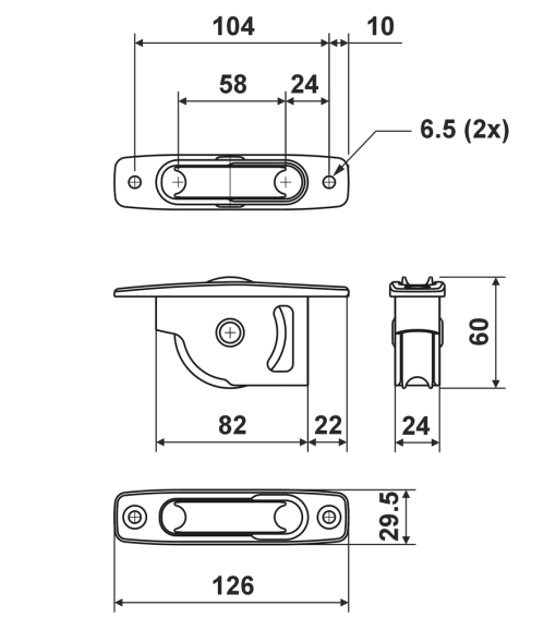 - 406-501-14: Används för att leda en lina genom sittbrunnssargen, däck eller akterspegeln. Idealisk för att hantera en badplattform. C-c 105 mm mellan hålen